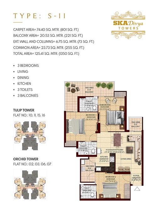 | 3 BHK + 3 TOILET | Carpet Area 1350 Sq.Ft. | |